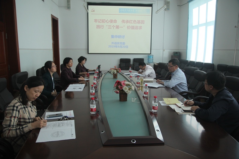 按照学校“不忘初心、牢记使命”主题教育集中学习计划安排,外语系于9月20日在41#417组织班子成员围绕“牢记初心使命,传承红色基因,践行‘三个第一’开展集中研讨。专题研讨由系党委书记赵欣主持,班子成员全体参加,系党委委员李丽、由春桥列席研讨。