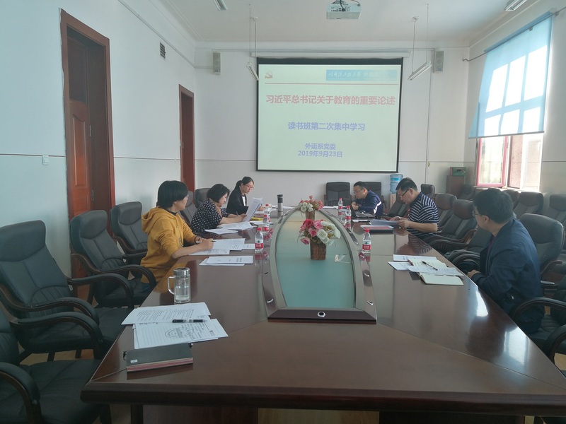 根据校党委统一部署,外语系领导班子于9月23日15:00在41#楼417组织开展了“不忘初心、牢记使命”读书班读原文学原著第二次集中学习。集中学习由系党委书记赵欣主持,班子成员全体出席。