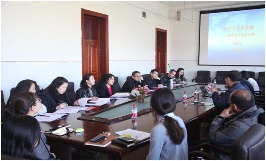 首先,外语系党委书记赵欣对主讲嘉宾李荣生同志做了全面的介绍,随后李荣生同志以“办公室工作杂谈——浅析办文办会办事”为题,围绕系直教职工业务能力提升及师德师风建设,做了严谨生动、深入浅出的讲座。他结合自身工作的经历体验和情景感受,从办文、办会、办事三个方面切入,向与会党员及教职工详细讲解了如何撰写公文、如何办好会议、如何做好日常工作。最后,他结合高校教师师德失范警示案例,详细讲解了“十项准则”、“十禁止”,让与会党员及教职工全面了解和准确把握师德师风的底线。