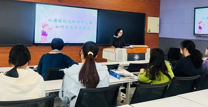 王盈副教授以《从课程论文到科研之路:如何完成学术跃迁》为题,详细讲解了如何将课程论文升级为高质量学术成果。她提出“选题—写作—升级—转化”四步法,建议学生从课程框架寻找兴趣点并刻意练习方法论,并重视每一次课程作业,将其转化为可发表的科研成果。