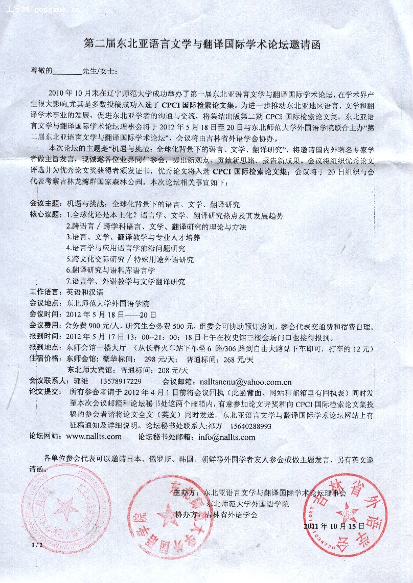 第二届东北亚语言文学与翻译国际学术论坛邀请函