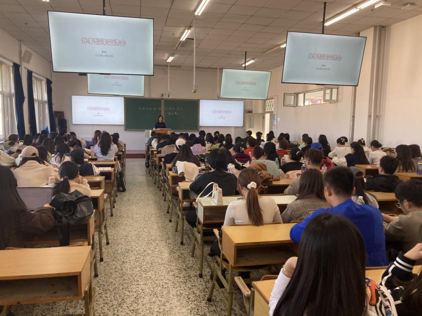 2023年10月18日,为更好帮助学生坚定专业自信,了解专业发展前景,做好职业发展规划,太阳成集团tyc9728邀请了黑龙江省人民政府外事办公室李彤,在21B#5087大教室举办第五期外语专业职场经验交流座谈会,活动由研究生辅导员张文智主持,外语学院大一、研一新生和大四、研二、研三近170名同学参加。