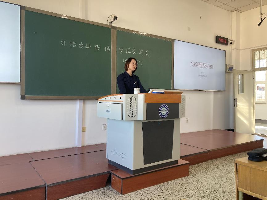 活动伊始,张文智老师对李彤老师的基本情况进行了简要介绍,以及座谈会的主要目的及流程。随后,李老师从外事基本概念入手,以黑龙江省外事工作为例向同学们进行了全面详实的介绍。接着,李老师谈及工作中需要具备的能力,以及从事这一工作的感受,从职业属性、文化文明的多样性、讲好中国故事等多个方面表达自己的真实想法。最后,对于同学们密切关注的职业发展前景,李老师指出,新时代对外语人才提出了新要求,外语人必须紧跟时代,努力锻造与新时代新要求相适应的能力素质和过硬本领。