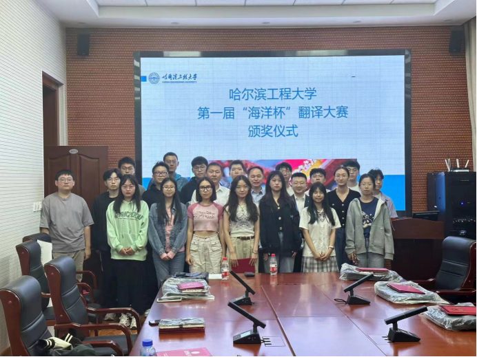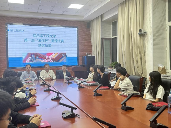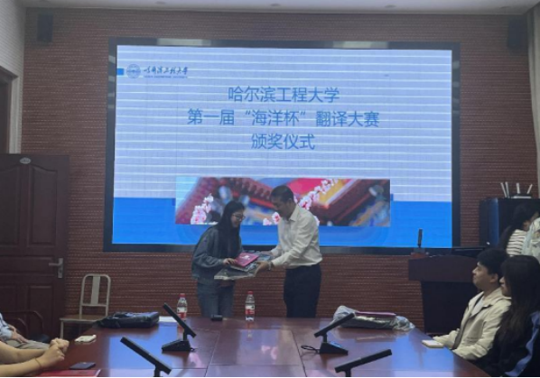 三位老师按照翻译类别,为获得一、二、三等奖及优秀奖的同学颁发荣誉证书和奖品。本次大赛共设中译英和英译中两组,旨在综合考察选手的翻译能力和潜力。本次大赛体现的不仅是组织有序、新颖精彩、公正透明的办赛风格,也是提升海洋强国战略认知度、拓宽学生视野的务实求真。参赛选手通过此次比赛,认识到在中国文化走出去、向世界表达中国,让世界懂得中国的过程中,将更加强化“请党放心,强国有我”的信念,逐渐成长为推进海洋强国建设的新生主导力量、生态文明建设的有力倡导者和活跃践行者,讲好中国故事,扩大国际影响、提升国家形象,为实现中华民族伟大复兴贡献力量。