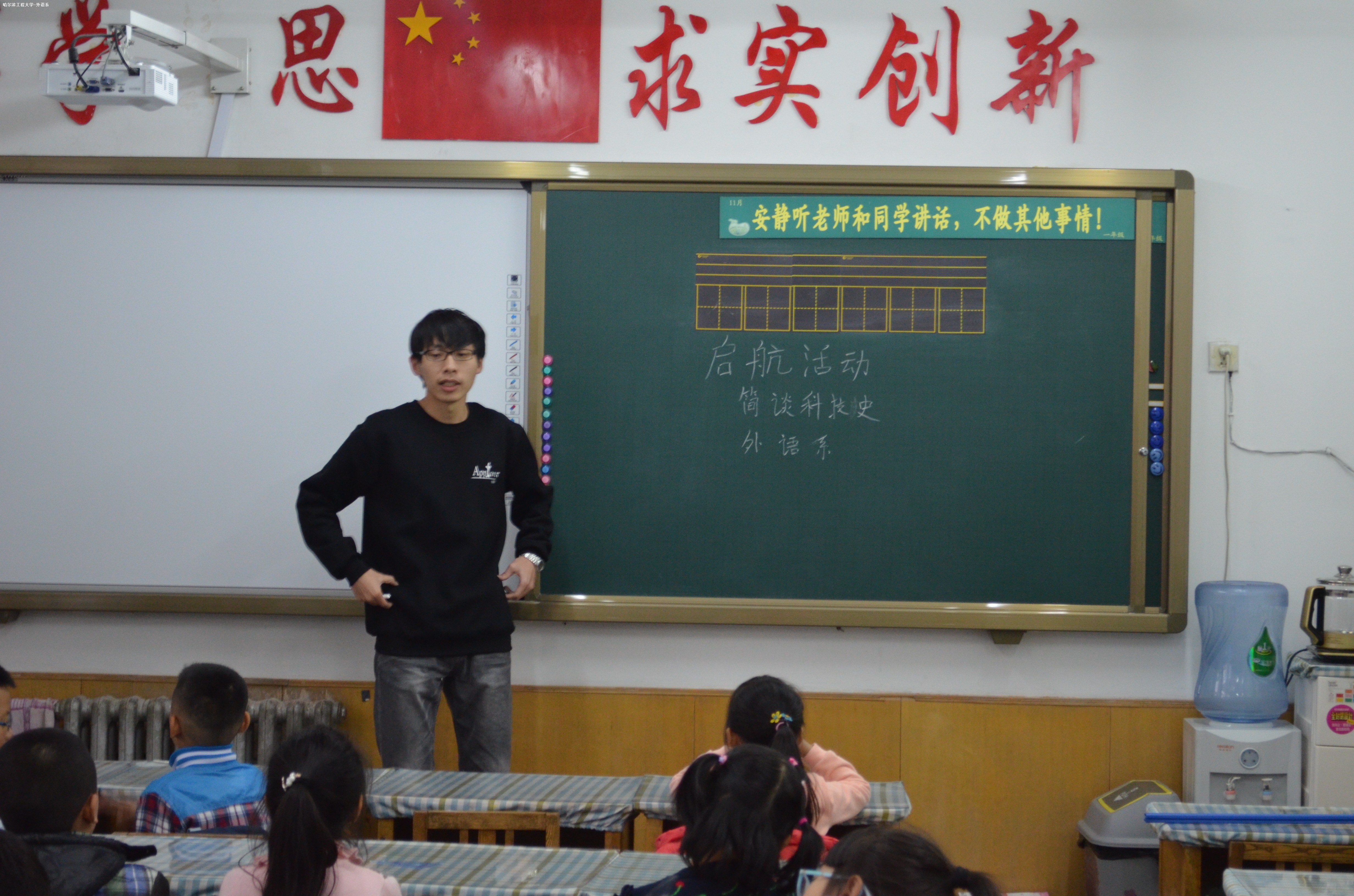 11月17日中午12:30,外语系科协参加了以“启航行动”为主题的支教活动,在系青协副部付益鹏的组织下,外语系共有宋伟平、钟伟业两位同学参加此次活动。