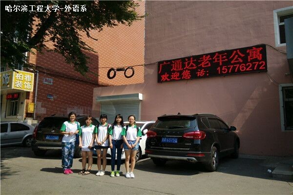 四个小组成员在组长的带领下,分工明确,,通过查找路线、确定行程、事先沟通、有效交流等有序的行动方式,在一天的共同努力下,先后走访了哈尔滨15家敬老院,其中包括道里区红旗助老幸福院、香坊区馨逸老年公寓,南岗区阳光敬老院等。小组成员在与老人交谈和养老机构管理者的沟通的过程中,完成问卷调查,同时给老人带去了许多欢声笑语。在调查中学习敬老事业的相关知识,在服务中体会爱心传递的温暖,在实践中践行当代大学生应有的责任和义务。