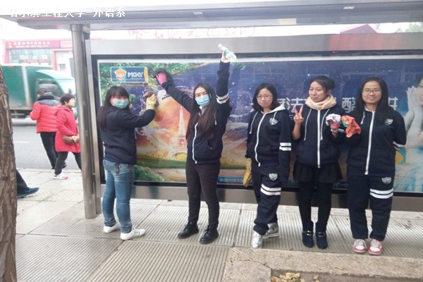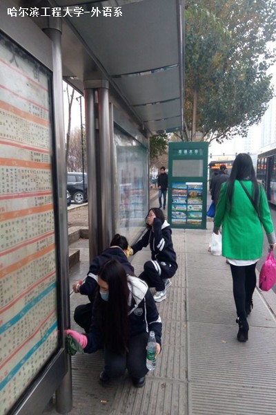 10月25日上午8时,外语系英才服务队在校青协负责人的带领下,拎着扫帚和抹布等清扫工具,浩浩荡荡的向南通大街各路站牌走去。此次活动是由校青协主办,各系青协组织响应的主题月青协活动,意在将街头垃圾清扫干净,整洁扩散,从我校开始。