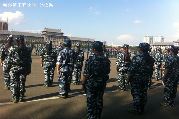 军训刚刚开始,外语系新生们都已饱满的热情迎接这未知的挑战。军工操场处处可见整齐的队列,不论是烈日炎炎,还是风雨凄凄,队列总是整齐划一,训练的正是同学们的纪律和意志;大小美食堂挤满了集中用餐的教官和同学,大家在规定的时间内有序进餐,寝室内务自觉整理,熄灯后按时就寝,无一不体现了军人训练有素的作风。白天的训练总是以嘹亮的军歌结束,夜晚的学习又总是以教室放映的纪录片开始,军训生活就像一场身体的行走,灵魂的旅行,无时无刻不对学生进行综合素质的培养和提高。
