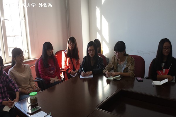 9月11日早7点10分,外语系团委学生会在基础楼402召开新学期第一次例会,出席会议的有外语系辅导员由春桥以及团委学生会的主要干部。