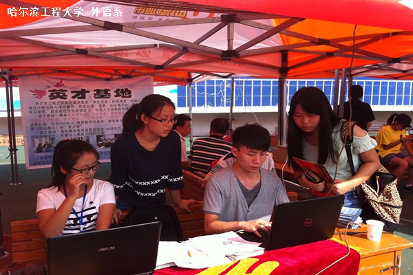 2014年8月14日早6点太阳集团9728外语系展开了一天的迎新活动,外语系党委副书记于磊,外语系辅导员由春桥,高明慧以及外语系大三的学生干部参加了此次迎新活动,从校门口到新生报到处,一张张崭新的面孔让本就活力四射的校园更加生机勃勃。