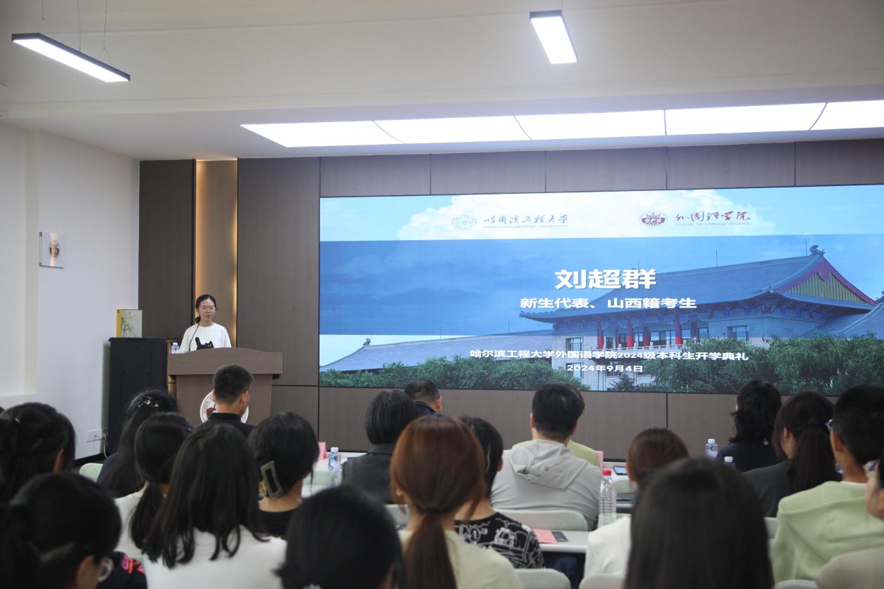 新生代表、山西籍考生刘超群发言。她表示在哈工程这方热土上,同学们将持续学习,积极求进,在未来的学习生活努力做到目标明确,初心不忘;勤学善学,实干致知;拓宽视野,敢于创新。“在过渡带、交叉点开拓,于新学科、新领域创造。敢于试错,循此苦旅,终抵繁星。”