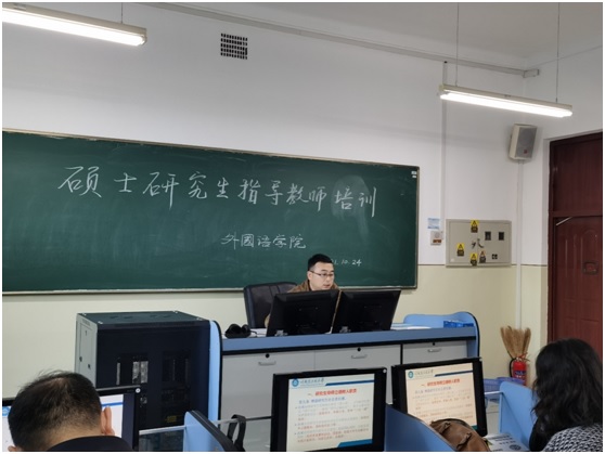 院党委副书记安沛旺作了题为《研究生培养过程中的注意事项》的报告,希望硕士生导师在学业以及就业、升学、情感等方面给予学生更多的关注和指导。