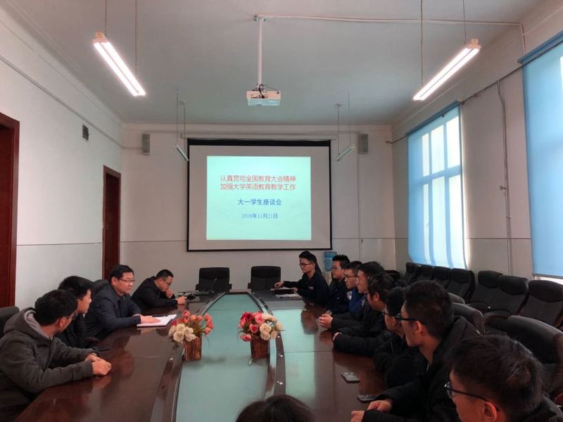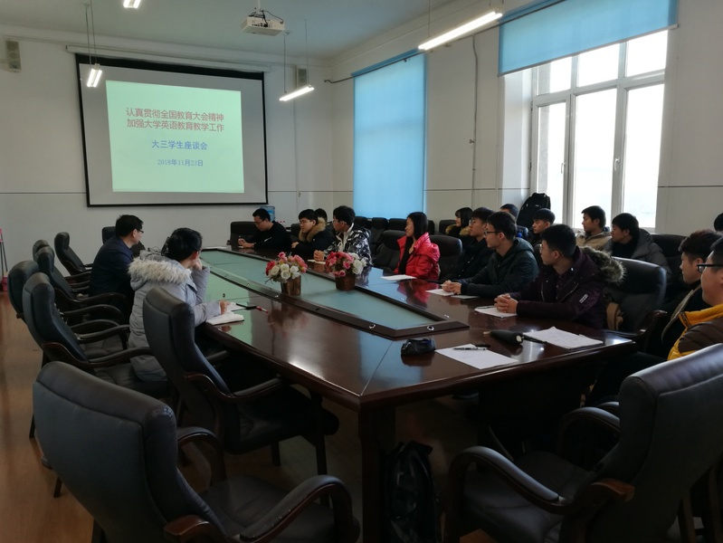 2018年11月21-23日,为认真贯彻全国教育大会精神,加强大学英语及英语专业教育教学工作,外语系连续召开四场学生座谈会,外语系领导分别参加并主持座谈会。