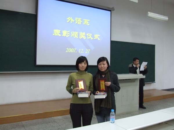 12月27日下午,外语系2007年度表彰颁奖大会在1号教学楼举行,系领导和全体教师出席了会议。