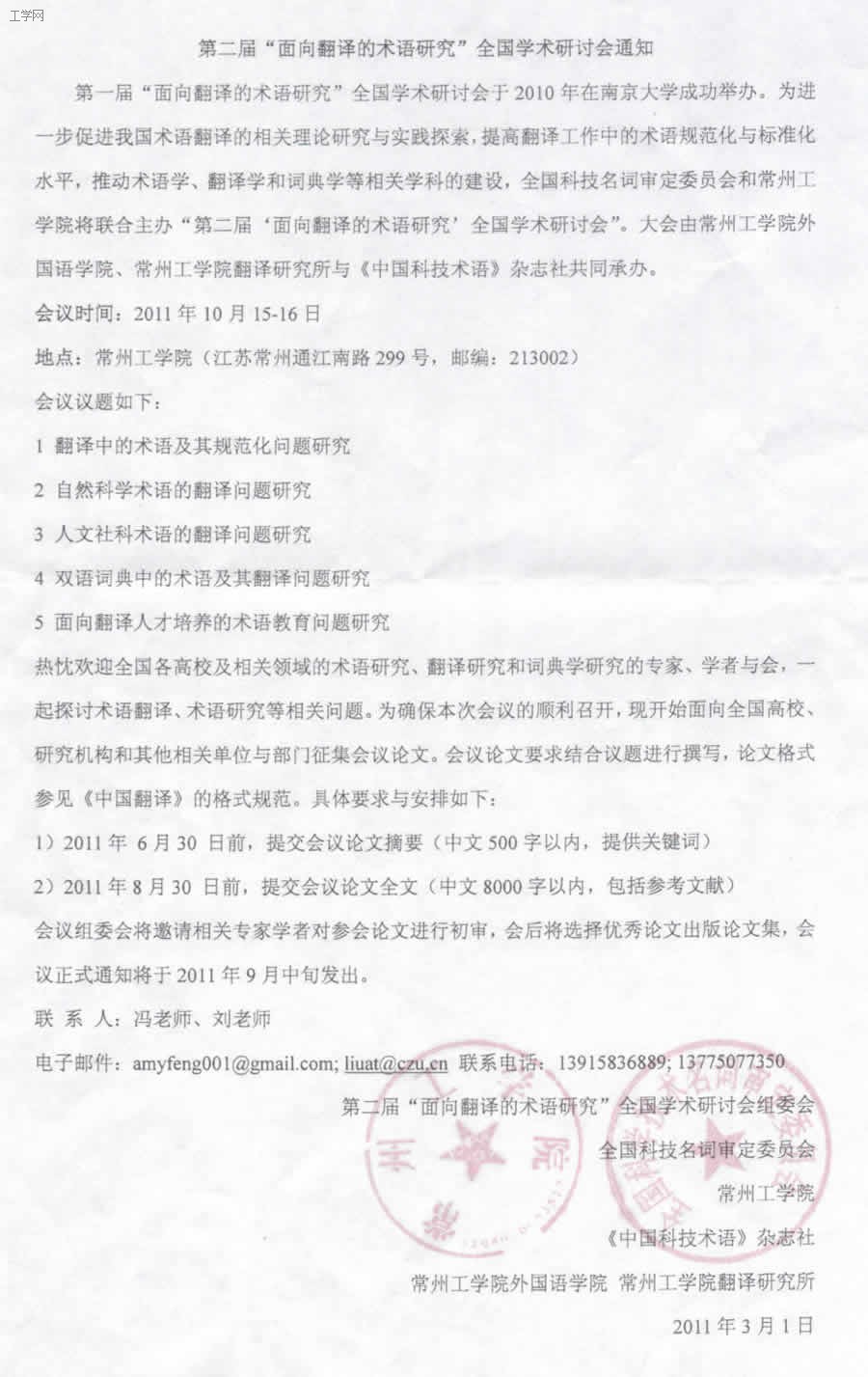 第二届“面向翻译的术语研究”全国学术研讨会通知